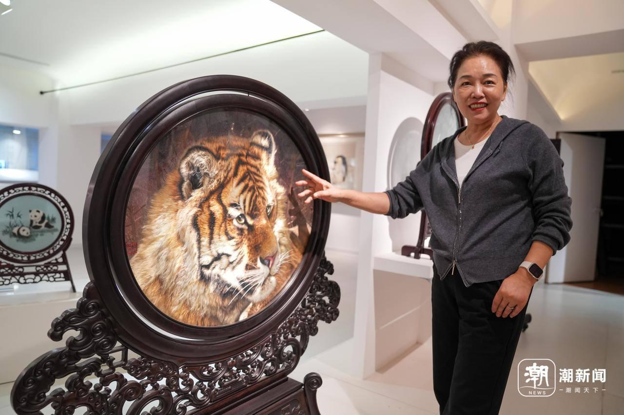 馆内一侧,珍藏着交融李艳立异针法的双面绣座屏《山兽之君》,同款曾以220万元高价拍出,成为刺绣著作国际商场的价值标杆;而另一侧,在李艳女儿昌妮主办下,湘绣不再是高不可攀的鸿篇巨制,转而翩然游动于腰扇、香薰盒,乃至冰箱贴、车挂之上。
